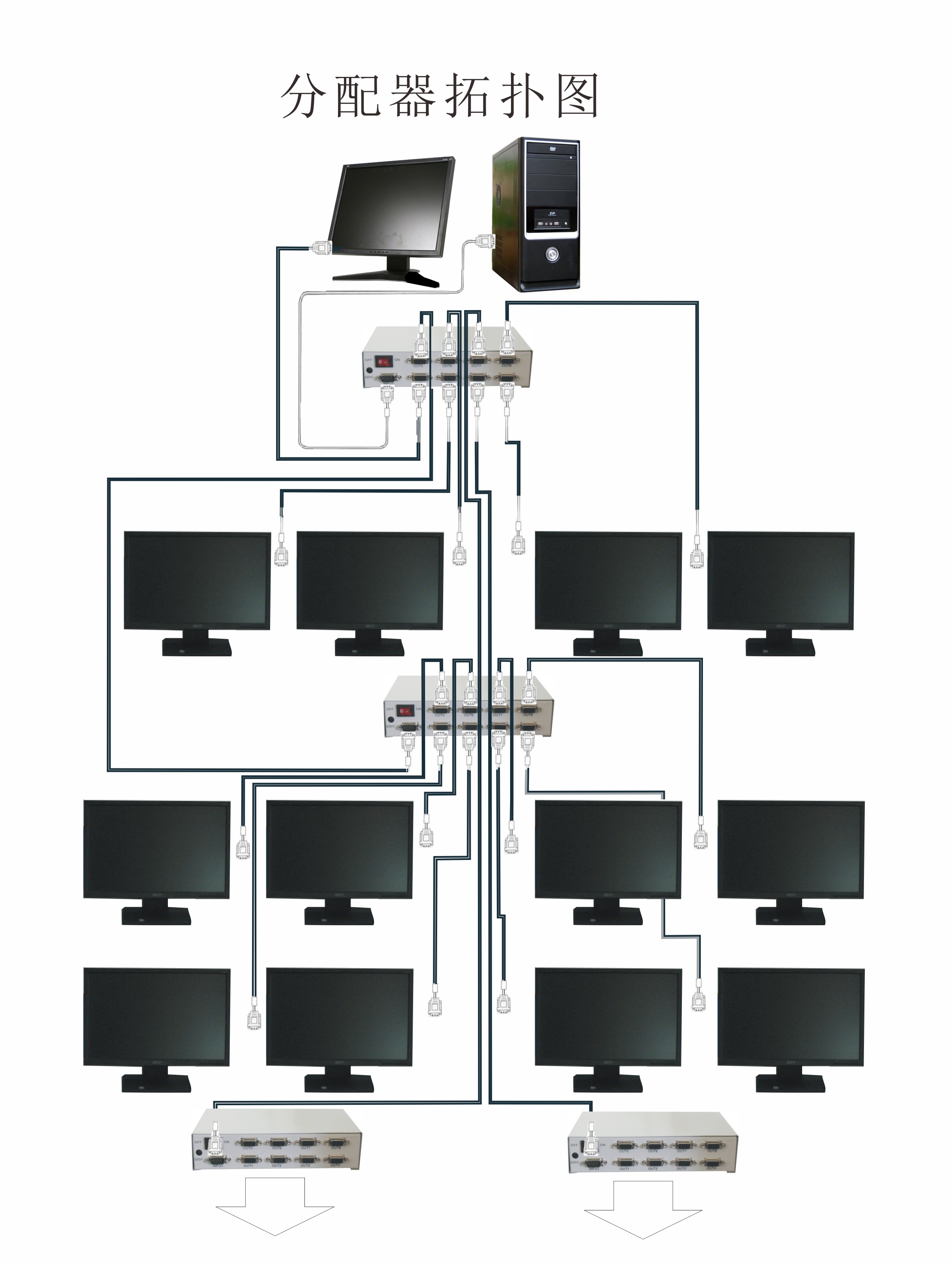 本公司自行研发生产的HL-060D高分辨率VGA视频分配器将1路VGA输入信号分配为8路VGA输出信号,输入输出接口采用标准的HDR15接口,能将所有的符合R、G、B、H、V格式的机算机,数字展台,电子显微镜等显示信号分配到投影机,背投彩电,VGA显示器,LED拼接屏等设备上;在某些场合,还能代替视频矩阵实现其功能,大大减少了成本和施工时间.