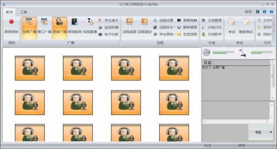 ☆ 语音教学:可以将您的讲话或其他语音节目发送给已登录的使用者,同时还可以与某一被控端进行双向交谈。接收语音教学的使用者可以是一个、某些或全体。您可以通过主功能工具栏中的 [语音教学] 按钮,功能菜单,快捷键任一方式进行语音教学。